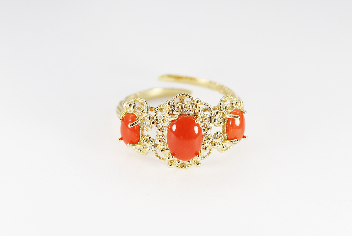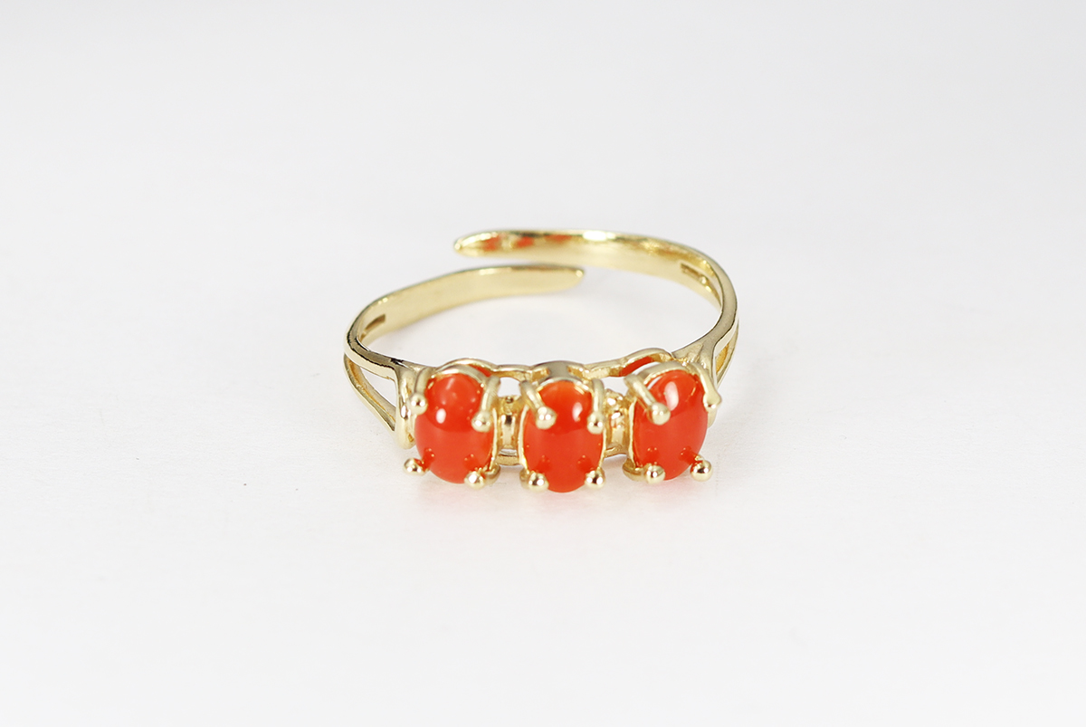 ANELLO 3 CORALLI ARGENTO DORATO