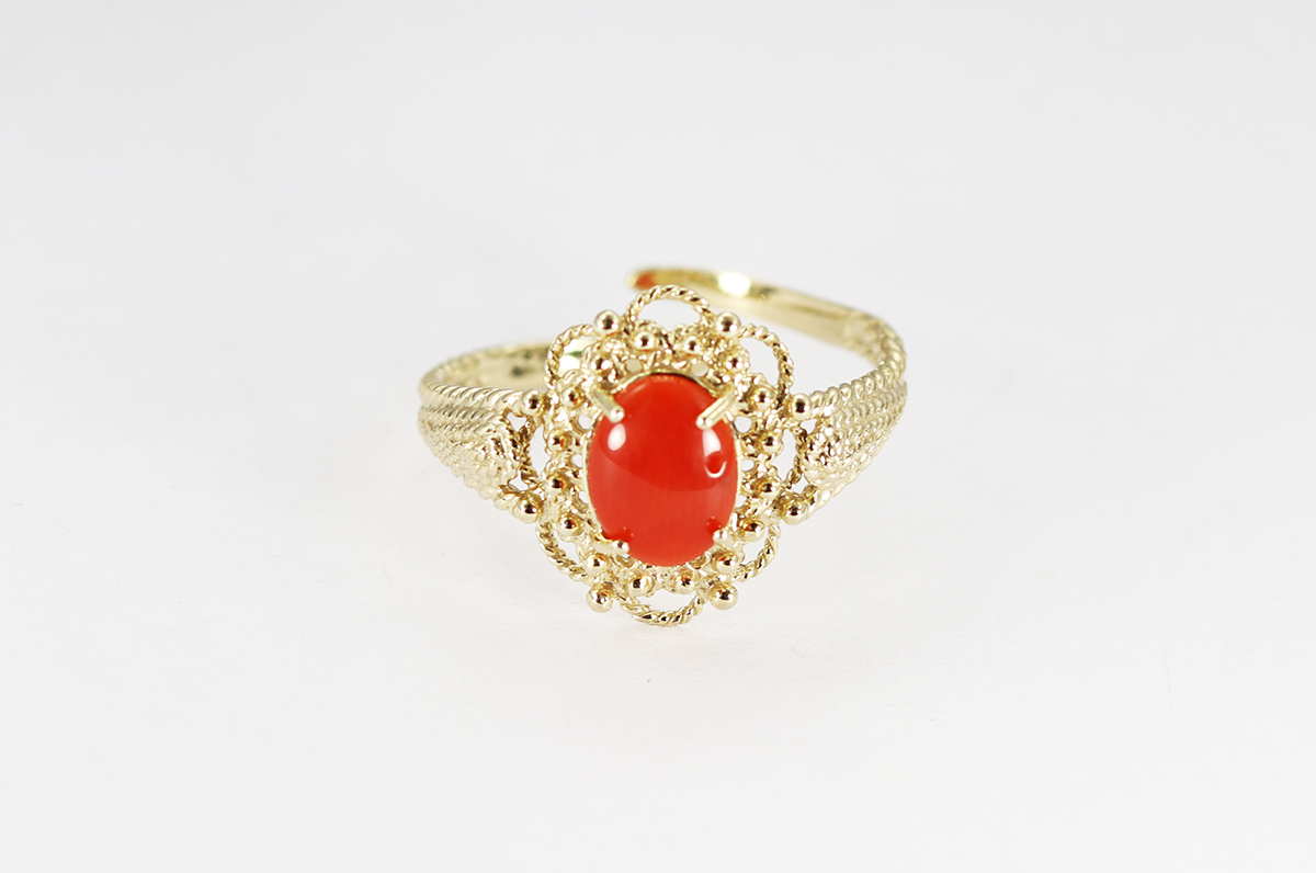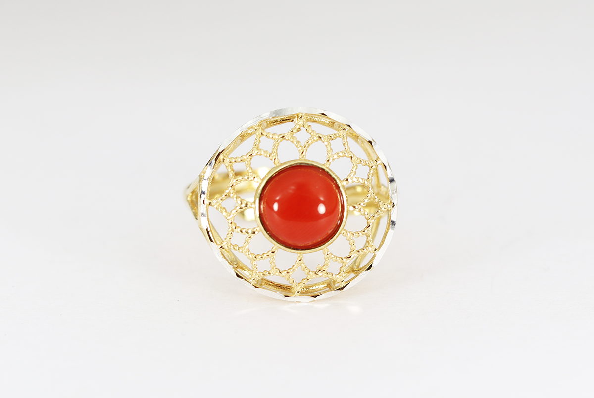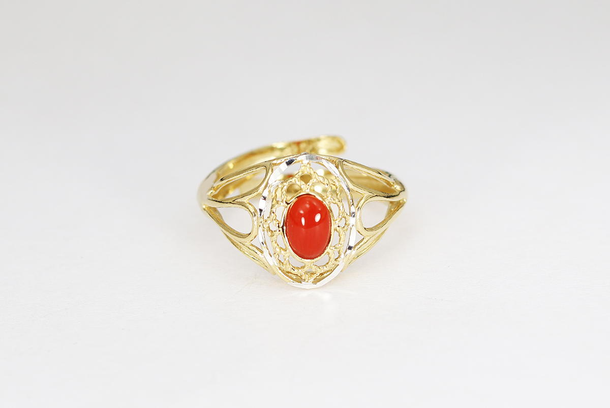 ANELLO CORALLO ARGENTO DORATO