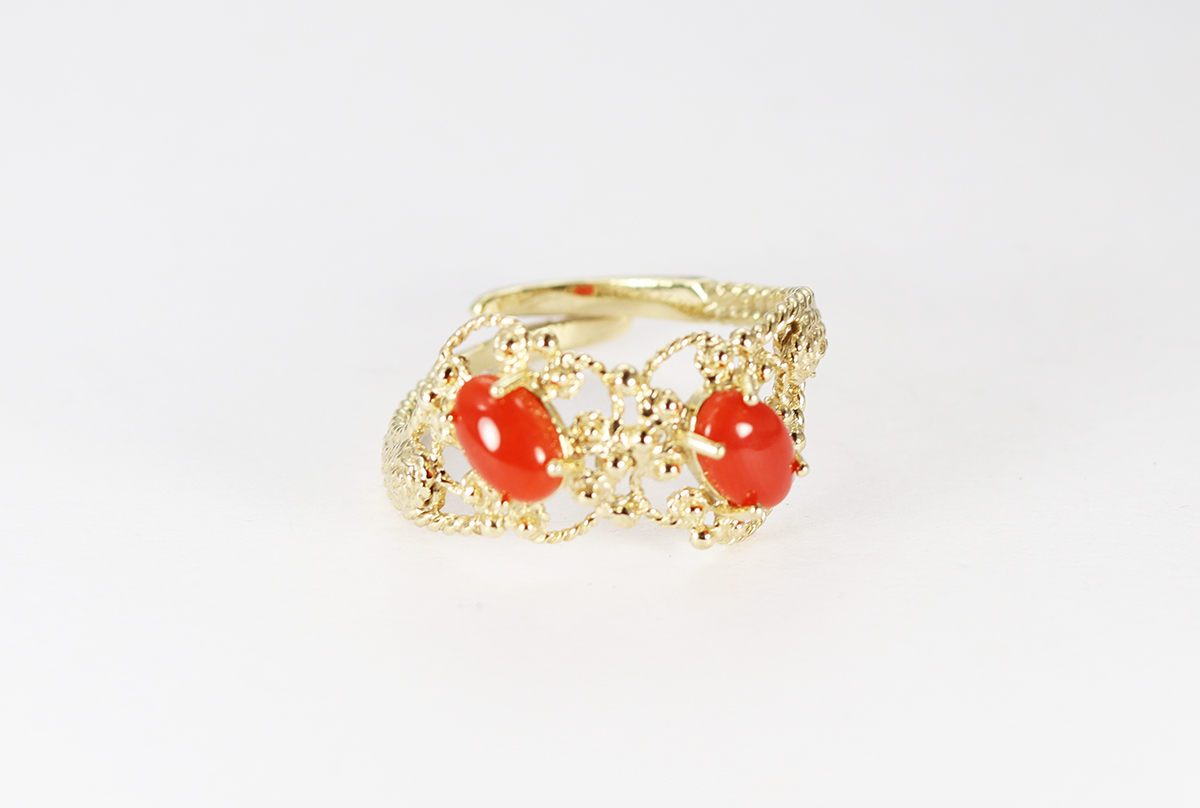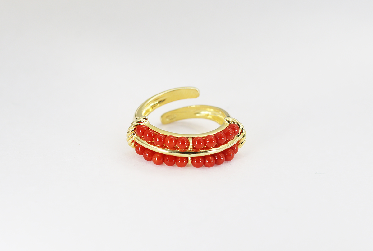 ANELLO 2 CORALLI ARGENTO DORATO