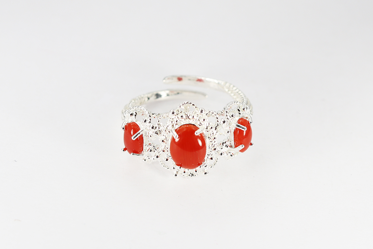 ANELLO 3 CORALLI ARGENTO