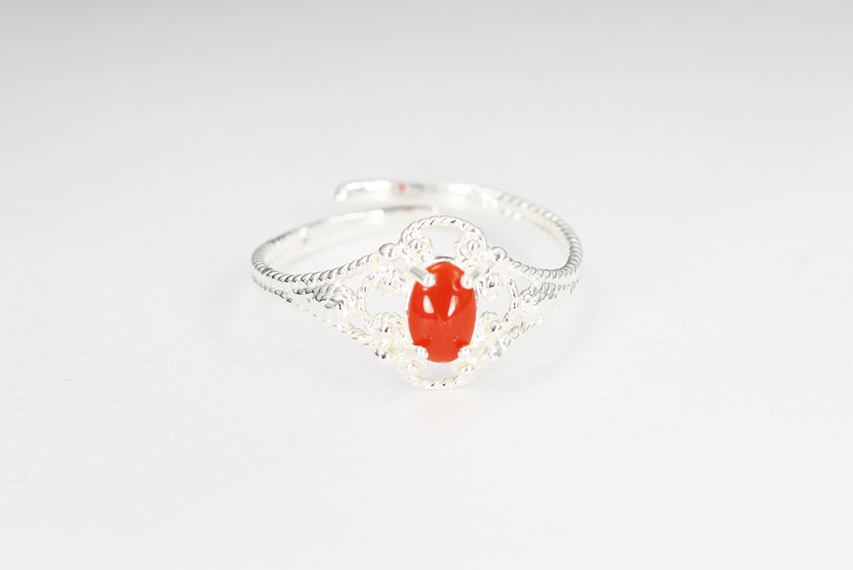 ANELLO CORALLO ARGENTO