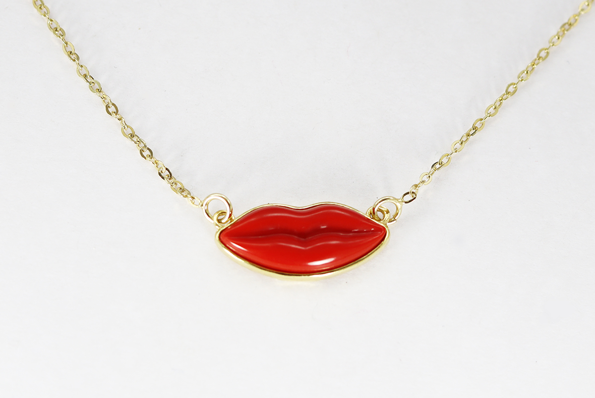 CIONDOLO IL BACIO CORALLO E ARGENTO DORATO