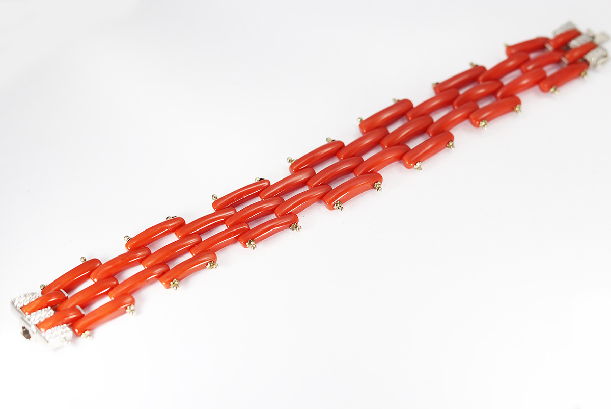BRACCIALE CORALLO ROSSOE E ARGENTO