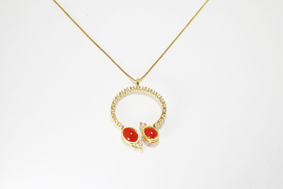CIONDOLO CERCHIO CORALLO E ZIRCONI ARGENTO DORATO