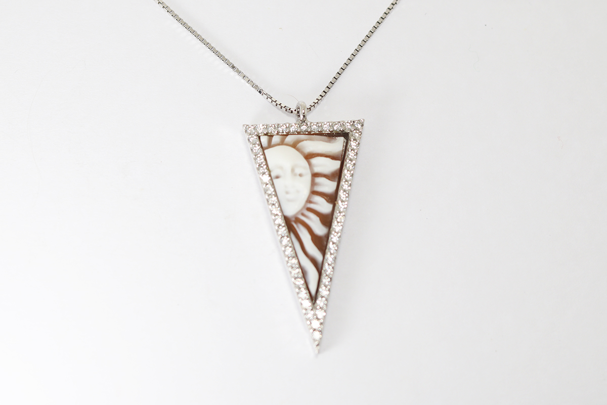 CIONDOLO TRIANGOLO CON SOLE CAMMEO SARDONICA 20MM ARGENTO E ZIRCONI