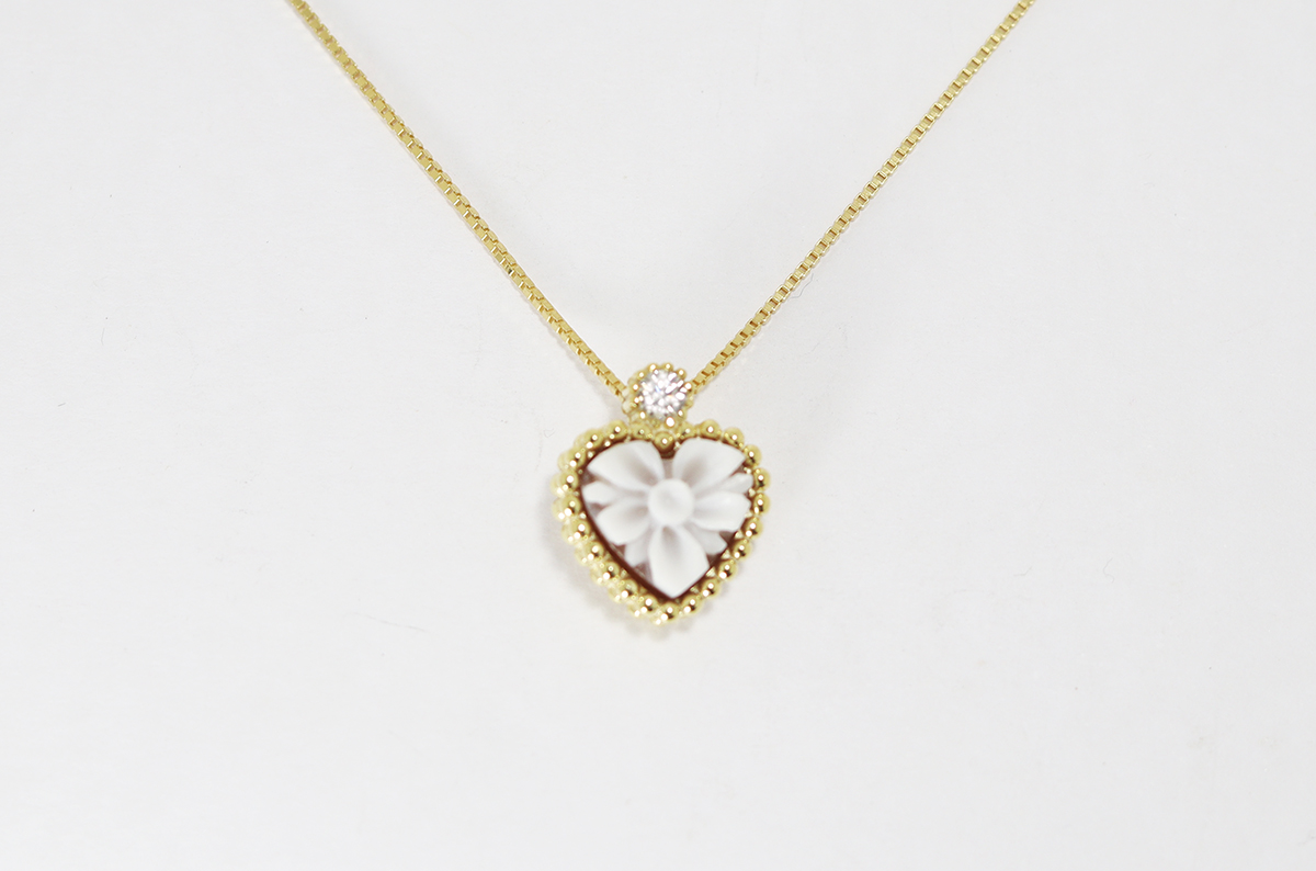 CIONDOLO CUORE CAMMEO SARDONICA 8MM ARGENTO DORATO E ZIRCONI