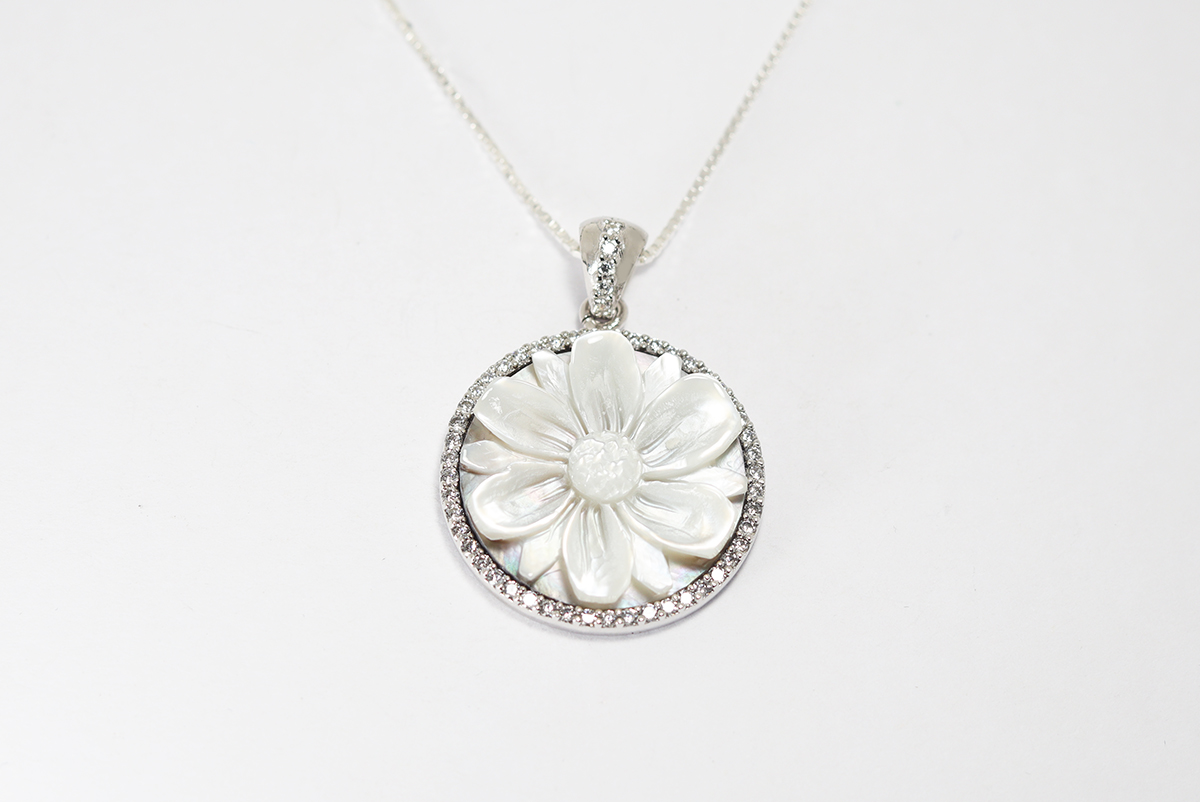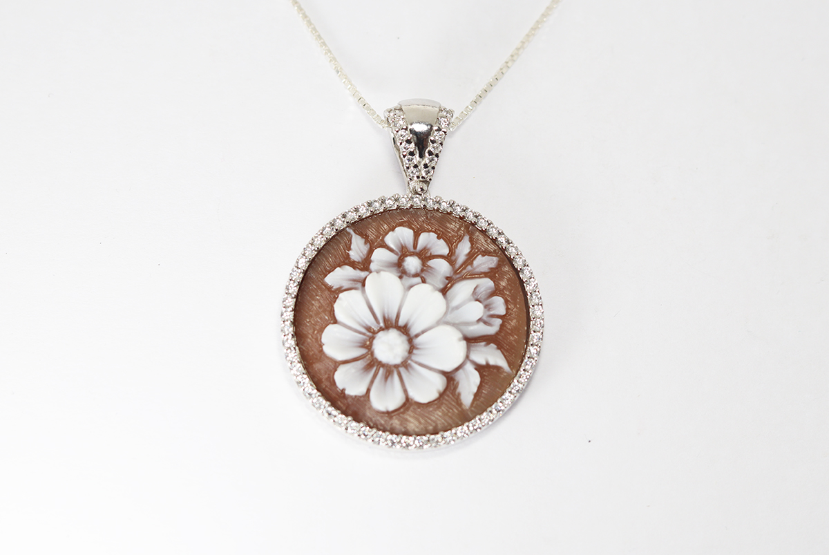 CIONDOLO FIORE CAMMEO MADREPERLA 20MM ARGENTO CON ZIRCONI
