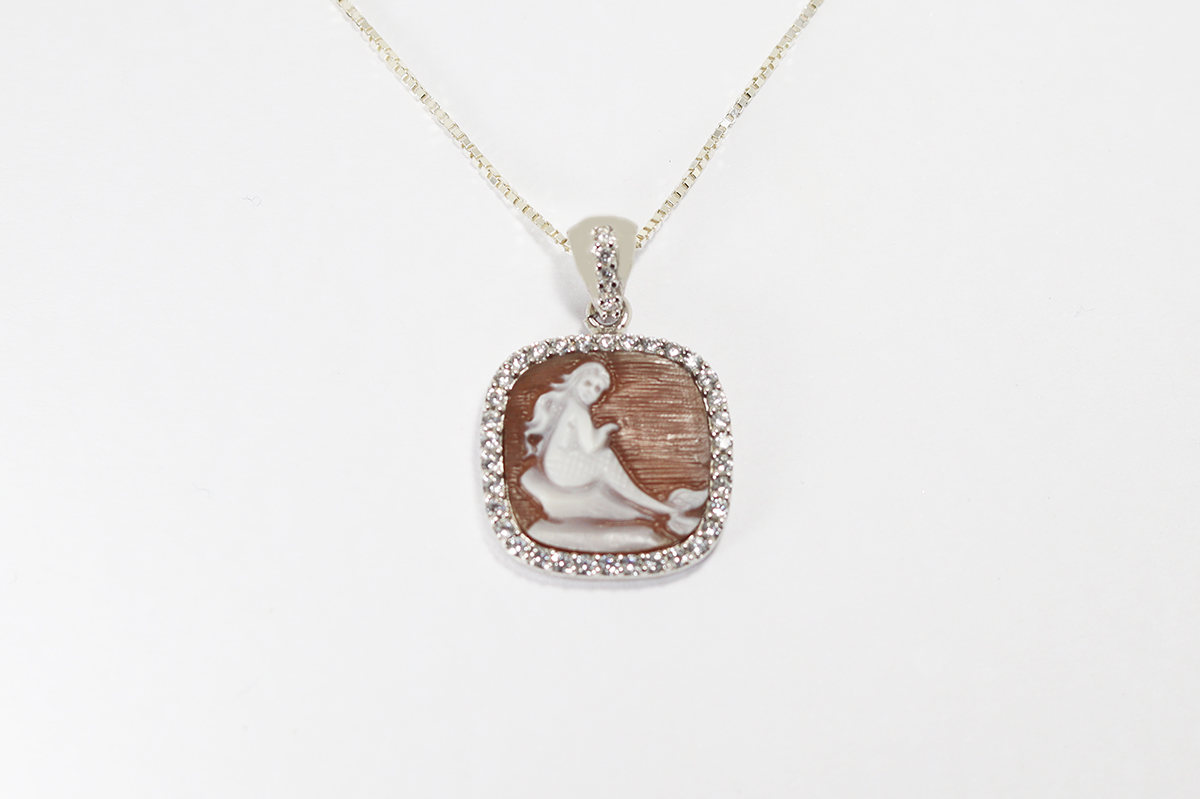 CIONDOLO SIRENETTA CAMMEO SARDONICA 14MM ARGENTO CON ZIRCONI