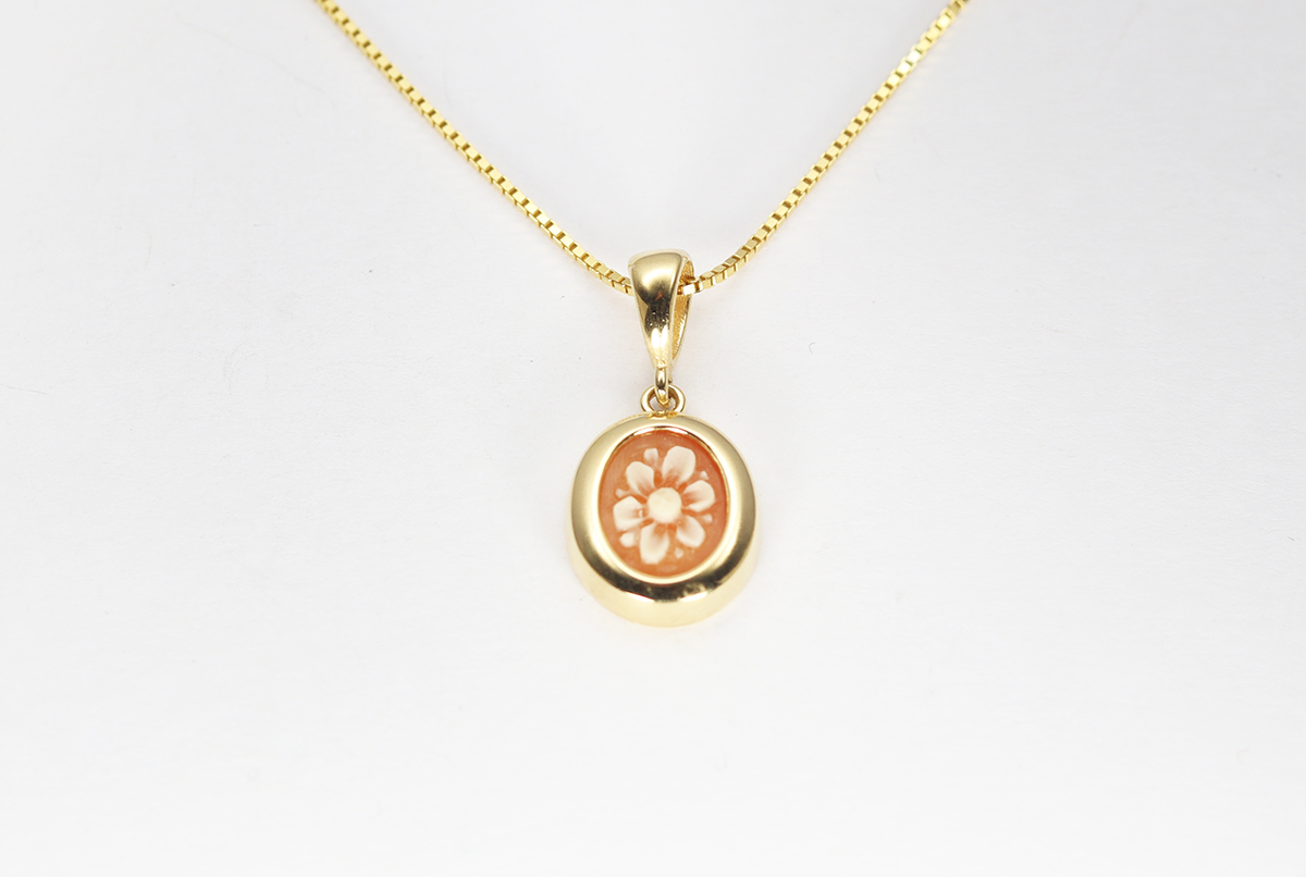 CIONDOLO FIORE CAMMEO CORNIOLA 10MM ARGENTO DORATO